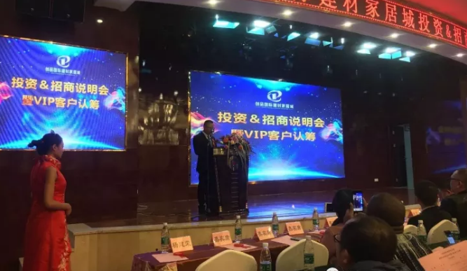 11月23日,創品國際建材家居城“投資&招商說明會暨VIP客戶盛大認籌”活動在衡山神龍盈佳酒店盛大召開。現場500余名來賓歡聚一堂,共同見證了“創品國際建材家居城投資&招商說明會及VIP金卡認籌”這一行業盛典。