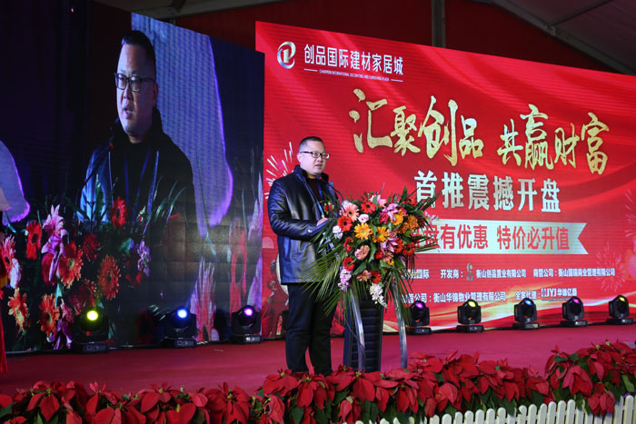 開盤儀式伴隨著創品國際建材家居城董事長陳春平先生的致辭正式拉開大幕。陳總簡單介紹了項目概況并誠摯的感謝了各位商戶朋友一路以來對創品國際的信任和支持。