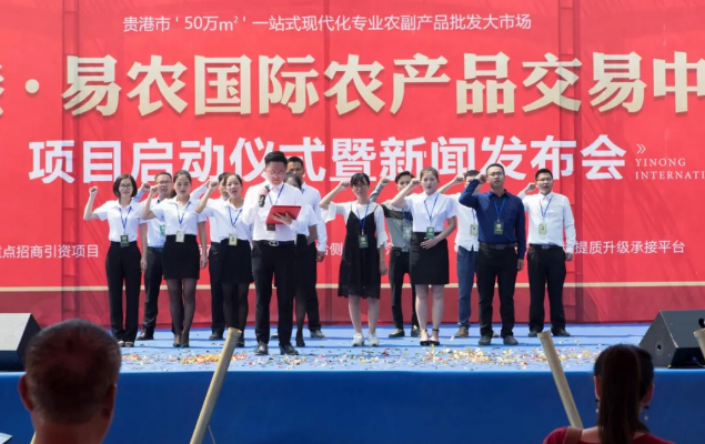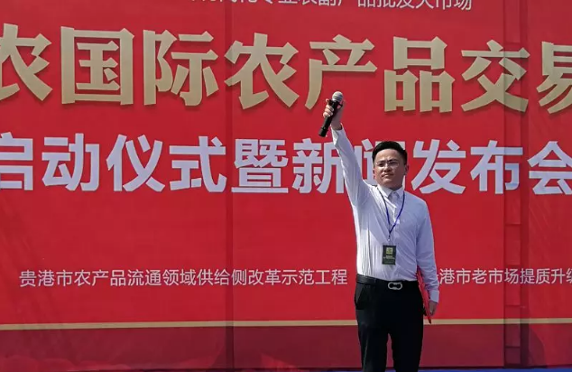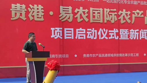 貴港好易農科技投資有限公司項目總經理鐘聲先生宣布易農國際農產品交易中心項目一期全面啟