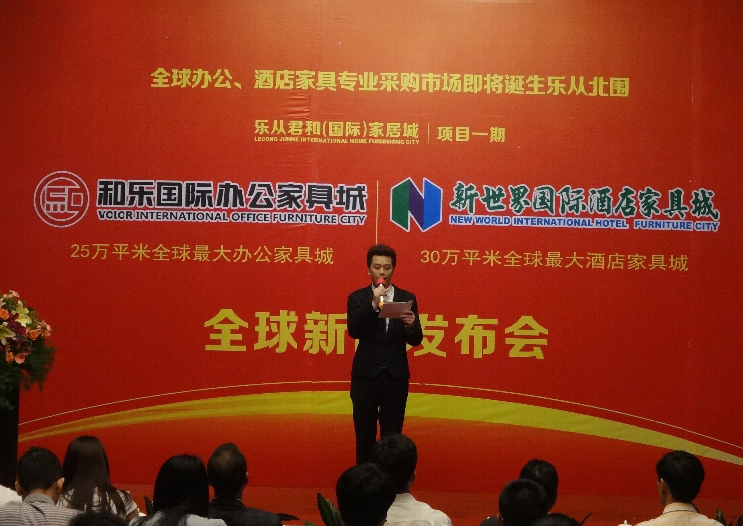5月20日上午,廣東君和國際在佛山知名的五星級酒店——樂從財神酒店,隆重召開“全球最大辦公、酒店家具專業(yè)采購市場即將誕生樂從北圍暨樂從君和(國際)家居城項目一期:全球最大辦公家具城——和樂國際辦公家具城,全球最大酒店家具城——新世界國際酒店家具城”新聞發(fā)布會。